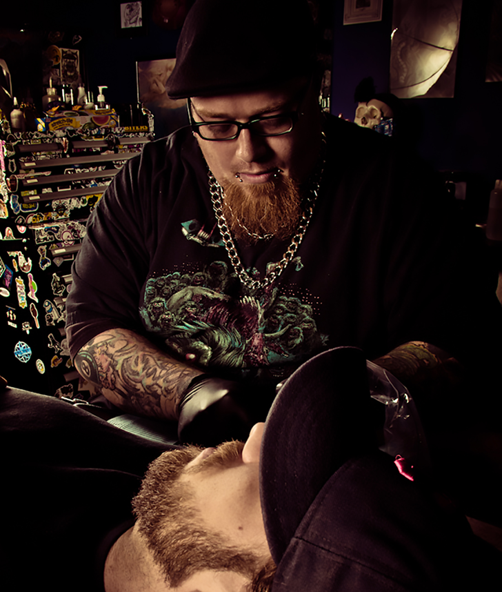 Scott Versago began tattooing in 1996. Now co-owner of Empire Ink based out of Akron, Ohio. Versago enjoys conceptualizing new and unique ideas that have a dark arts twist. He seeks concepts that find a balance between beauty and decay while incorporating a deep sense of mystery and topping it off with a touch of bio-organic textures and shapes to transform the body. Some of his favorite subjects to tattoo are creature concepts that you see in sci-fi horror films or monsters you read about in stories from authors like H.P. Lovecraft or Stephen King. He’ll never turn down the classics like a skull or rose but don’t be surprised if he throws in a twist….